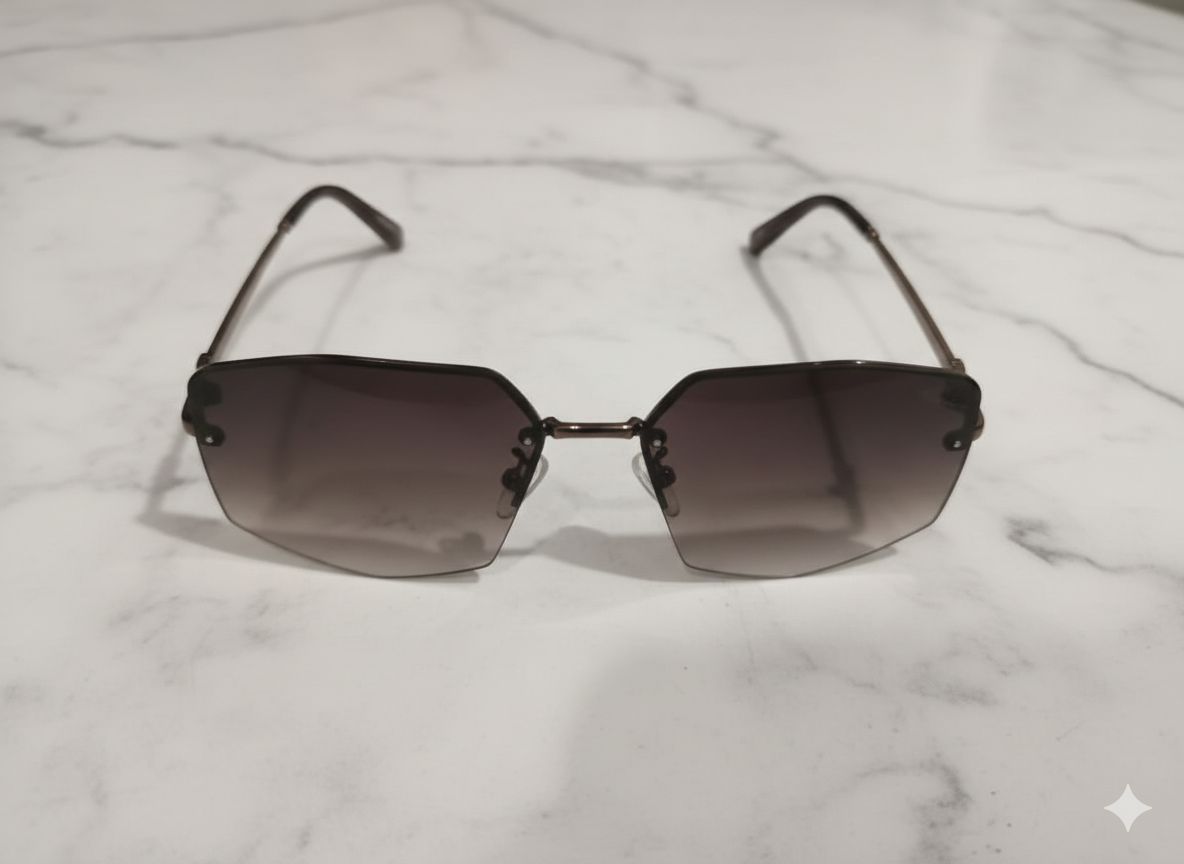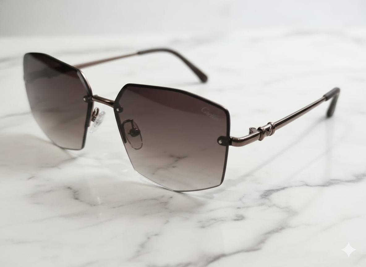 Bold yet refined, these Cartier geometric rimless sunglasses showcase a modern luxury aesthetic. Featuring softly angular lenses with a sleek metal bridge and minimal frame detailing, this design reflects Cartier’s signature elegance with a contemporary edge—perfect for premium everyday wear.