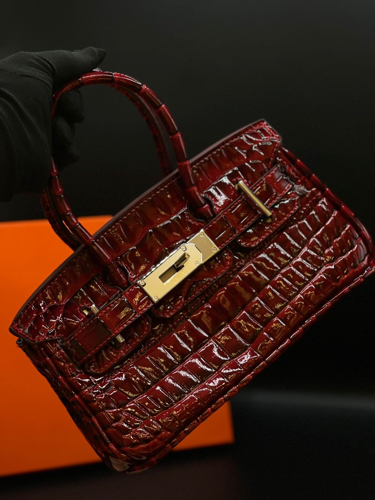 Croc-embossed glossy leather-look finish (luxury-inspired)