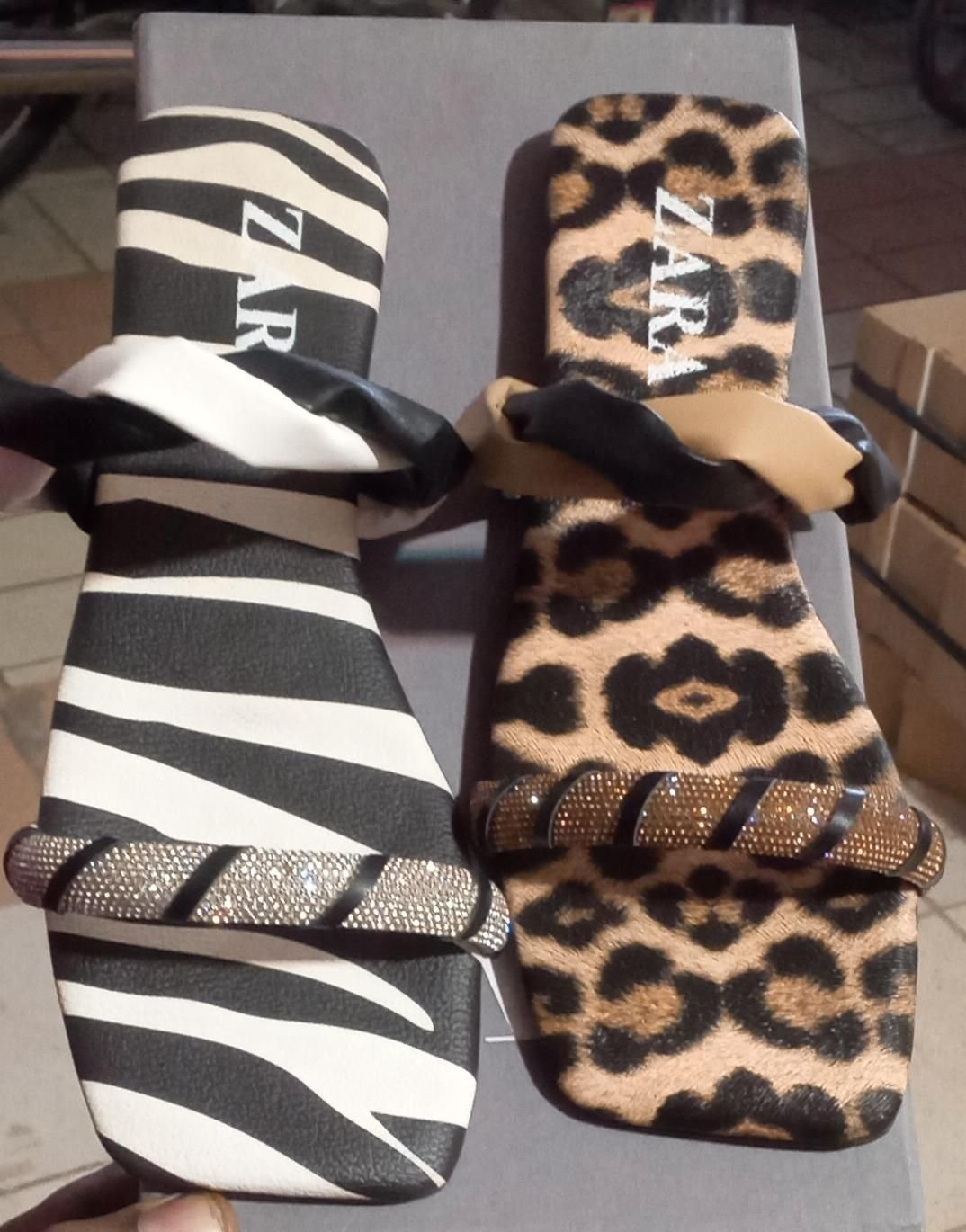 Fashion-forward flat slide sandals featuring a bold zebra print design with crystal bow detailing. Designed for stylish everyday wear, these flats combine comfort with a statement luxury-inspired look.
