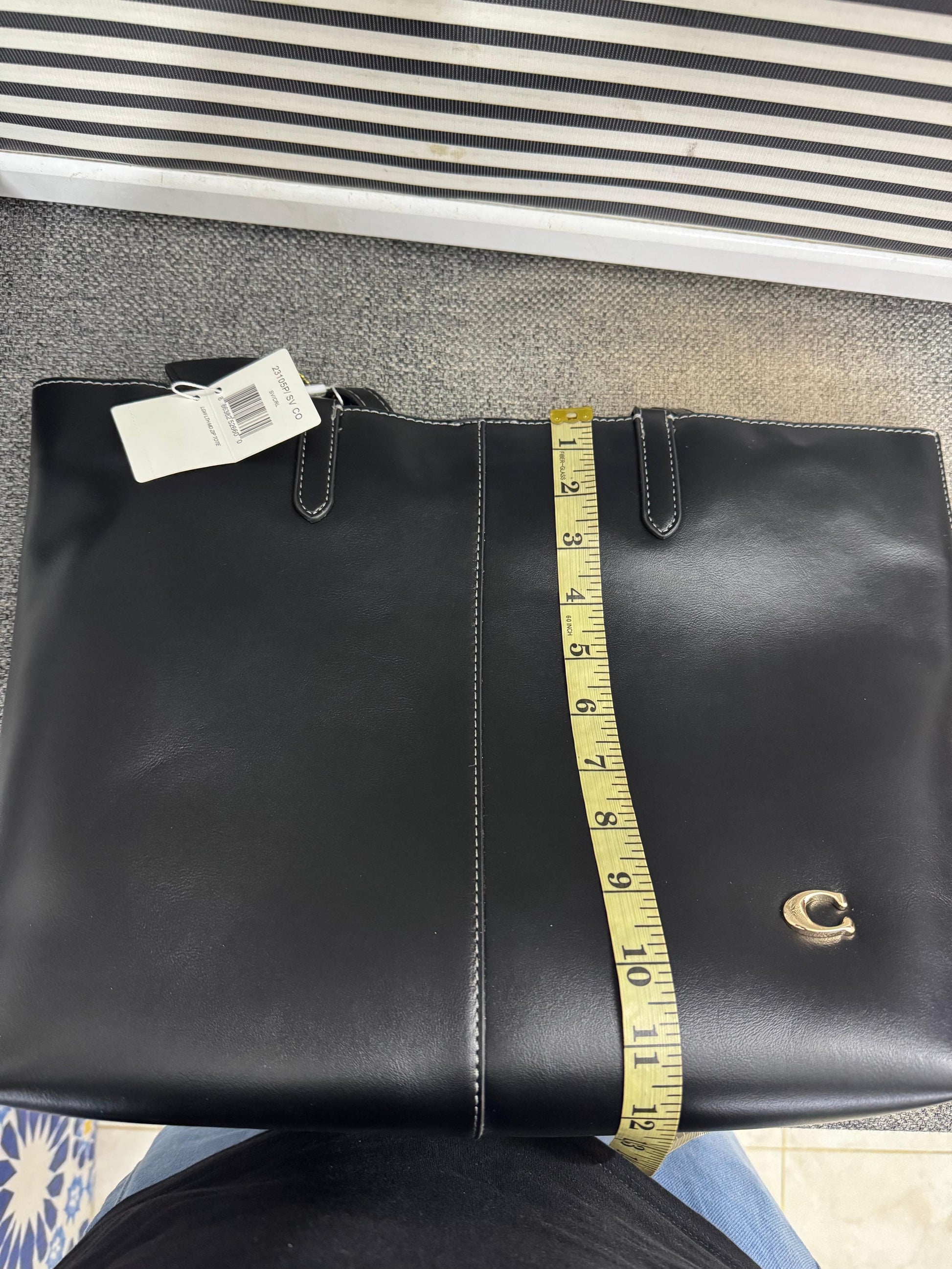 A sleek and elegant luxury tote featuring premium polished leather, spacious structured silhouette, minimalist Coach signature design, and long shoulder straps for stylish everyday office and casual use.