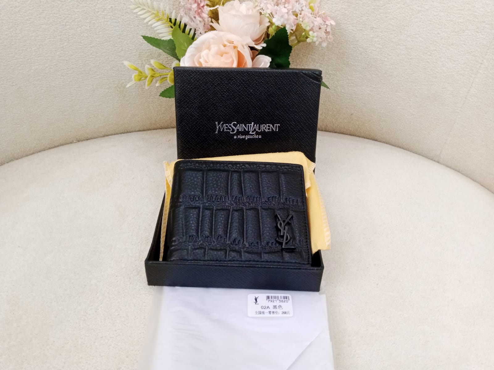 YSL ka yeh premium bifold wallet croc embossed texture aur signature Saint Laurent logo detailing ke sath luxury elegance ka perfect combination hai. Sleek black finish aur refined designer craftsmanship isay classy, sophisticated aur timeless everyday accessory banati hai.